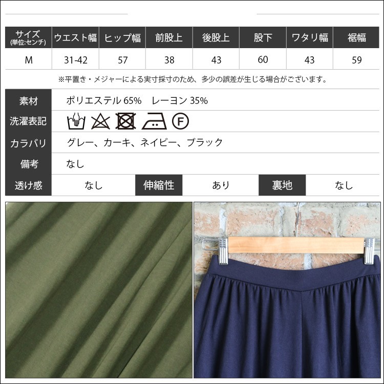 実寸:ウエスト幅 31-42cm ヒップ幅 57cm 前股上 38cm 後股上 43cm 股下 60cm ワタリ幅 43cm 裾幅 59cm