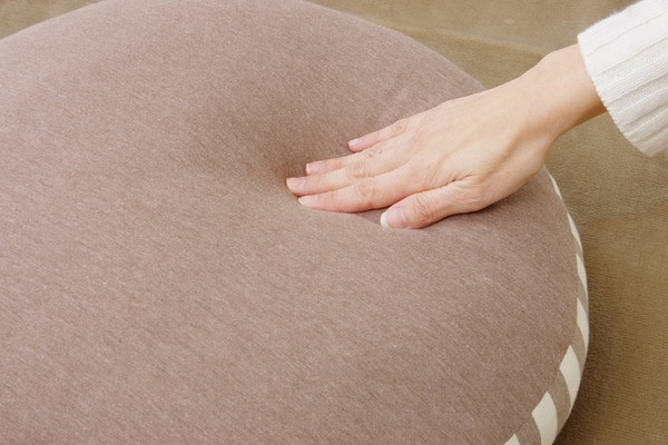表地にニット素材を使用したクッションです。伸縮性があり、季節を選ばず年間ご使用いただけるようにしました。お部屋の雰囲気を崩しにくく使いやすい商品です。