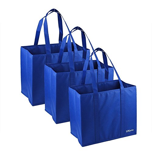 UName 3pcs Large Collapsible Shopping Box, Blue Reusable Grocery Tote Bag, Picnic Bag, Laundry Bag. Crusty Bag, Cardboard Bag.UN272