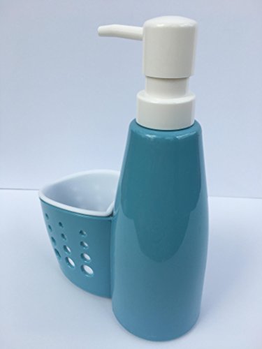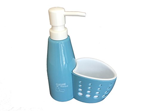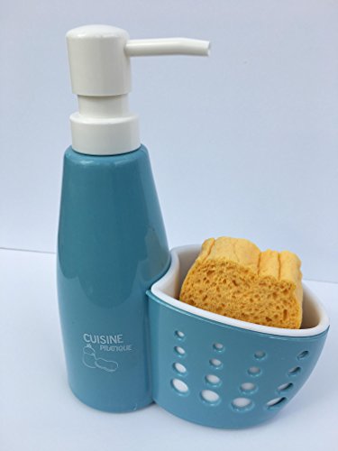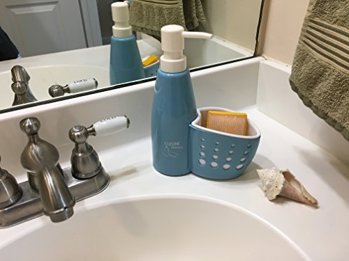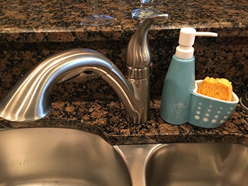 Kitchen and Bath Sink Soap Dispenser Pump with Sponge Holder, Scrubby Caddy Organizer (1, Blue)