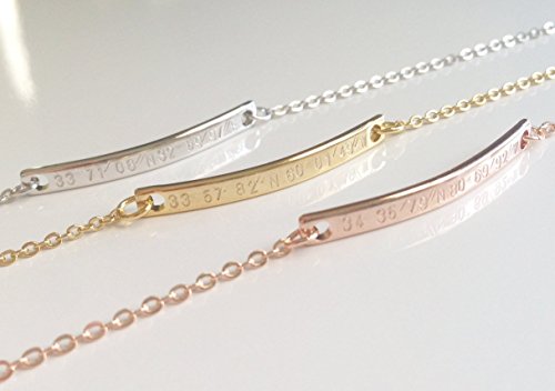-. Brand : MignonandMignon -. Department : Women -. ProductGroup : Guild Product -. ProductTypeName : GUILD_JEWELRY -. Title : A Delicate GPS Coordinate Bracelet in 16k Gold -Plated Silver Rose Gold - Enter your choice of coordinates in the 'options' menu. We personalize accordingly.