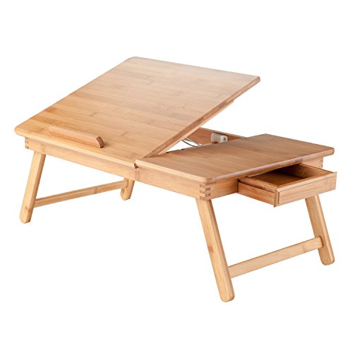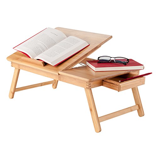 -. Feature : Dimensions: 24.79W x 13.31D x 9.2H in. / Made of natural bamboo wood / Features a flip top and folding legs / 5 adjustable angles / Natural bamboo finish