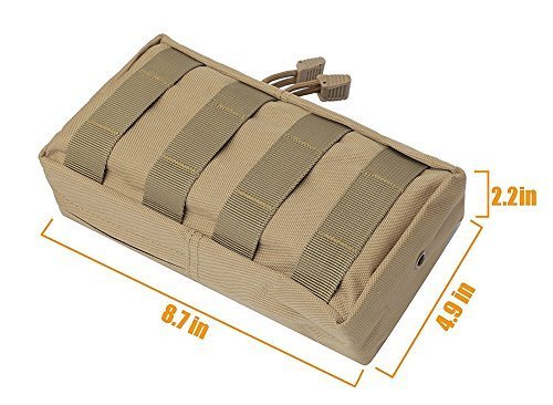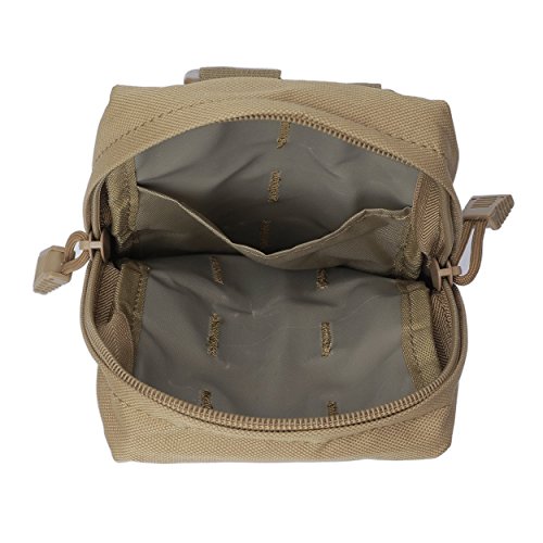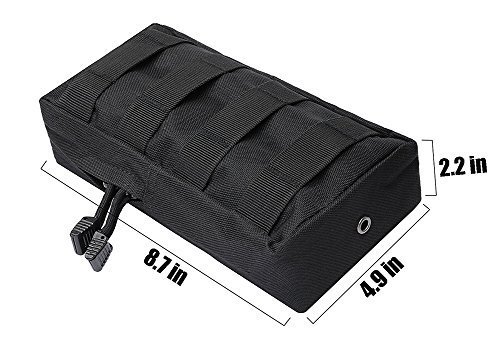 -. Feature : PREMIUM QUALITY: Made of 600D nylon, durable and water-resistant. Lifetime money back warranty. / COMPACT SIZE: Approx 8.7 x 4.9 x 2.2 inches(T x L x W), lightweight, easily portable, no more worries for carrying your essential items. / VERSATILE MOLLE POUCH: The main pocket is an ideal tool organizer for EDC accessories, GPS devices, flashlight, knives, medical supplies and everything else you need readily accessible. The interior pocket is perfect for valuables like cellphones, ID card, cash, keyring and other small gadgets. / MOLLE SYSTEM: Heavy duty webbing belt loop on rear, MOLLE attachment straps to be worn on belt, tactical vest or backpack. / UNIQUE DESIGN: Every molle pouch has two zipper for fast access and steel drain hole rivet in the bottle and two bonus D rings on the top, would be a good choice as a gift for outdoor sports enthusiasts.