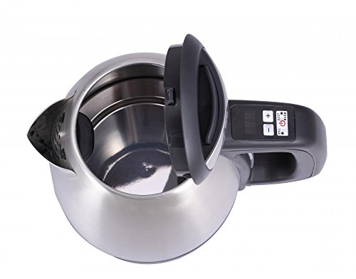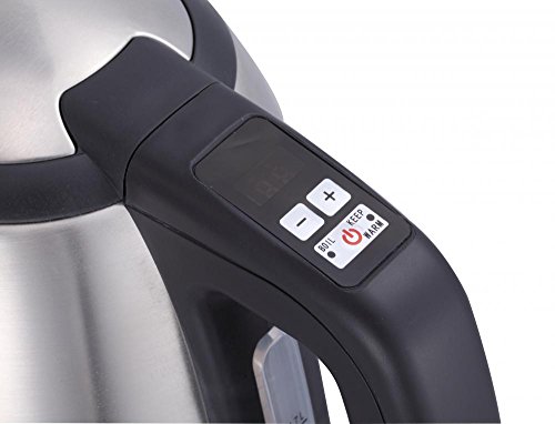 Description: The Hot Kettle from BestAppliance provides boiling water in a matter of minutes. The 1-1/2-liter capacity is ideal for a variety of uses--hot tea, soups, instant coffees, oatmeal, hot chocolate, noodles, baby formula and more. Once water reaches a boil, the kettle will automatically shut off and lifts off its base for easy, cord-free pouring. The beautiful polished stainless steel finish looks great whether serving or simply sitting on the counter.Variable temperature control from 50 C to 100 C, 5C per space ON/OFF and keep warm function integrated into one button Temperature display Simple +/- buttons adjust temperature Pull off lid Digital control on handle Strix control Please check the User Guide for Setup, Installation and TroubleshootingFeature