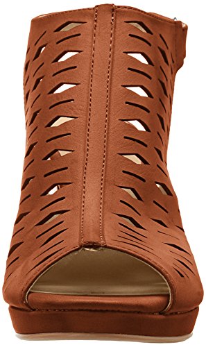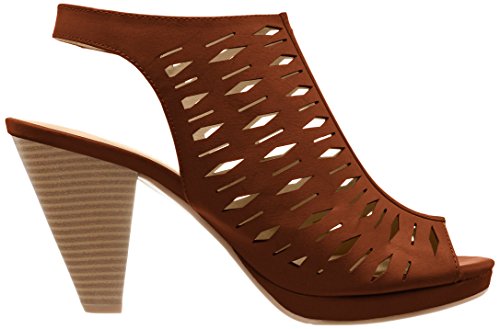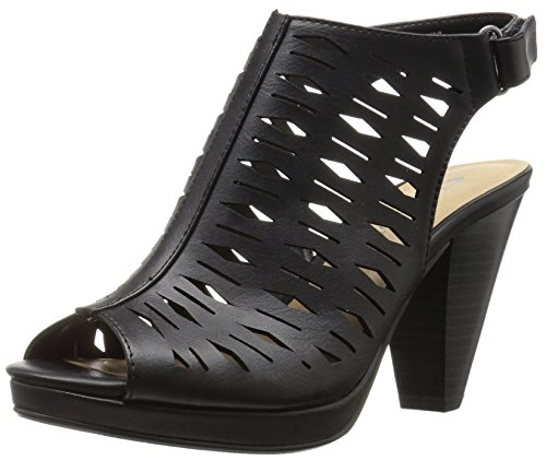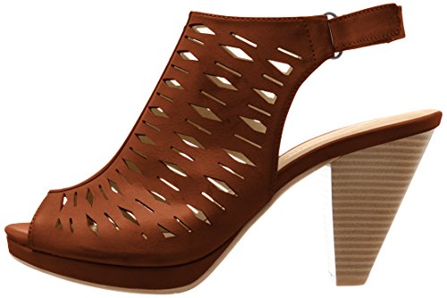 Product DescriptionLaser cut peep toe sandal with stacked heel0