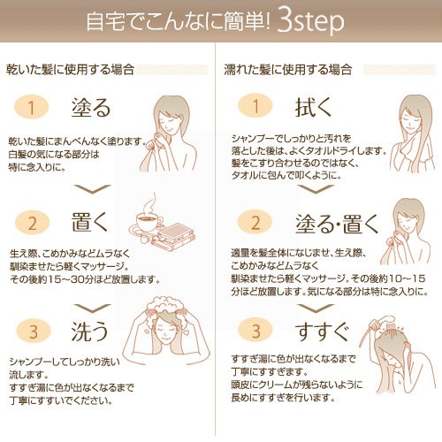 I purchased a small size thinking to try it for testing. At first it was about 3 days or so it was not stained unless it had to be painted, so I tried that. Was the method of painting shallow or not obscured on the surface, the middle person was not stained so much. Because it is a treatment, it is more texturized than ordinary gray hair dye, it is easy to remove even if it is dirty, but it was easy to handle, but I thought that color is hard to fix even for hair. However, it has no irritation to the skin, the smell is not strong, the hair becomes smooth and shiny, so it is a good impression. As I could enjoy using it, I thought I should keep using it.