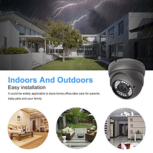 IR Night Vision : Built-in 2.8-12mm Varifocal Zoom lens, effectively extend your observation range. With 36 pcs IR infrared LEDs, it has 100 feet IR range, can change from color to black automatically and take clear picture during both day- and night-time.