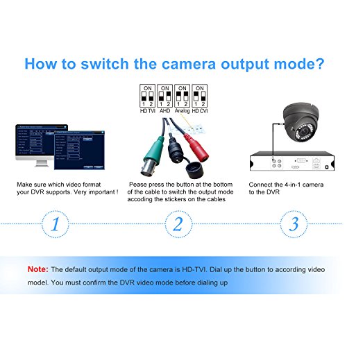Please notice:Default Video MODE is 1080P TVI MODE, Compatible with all Analog DVRs. 1080P Video Mode must be switched according to your DVR