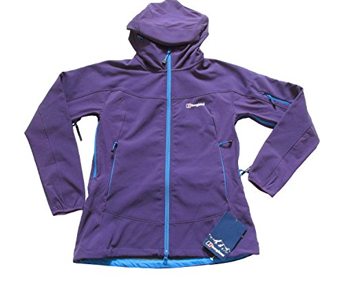 Binding : Apparel Product Description Protect against the elements with the fixed adjustable hood that can't be removed and lost Stay cool whatever your exertion rate with pit zip ventilation Cut to a technical fit with articulated sleeves for greater mobility on the mountain side A comfortable fit in ensured with the elasticated and adjustable hem drawcord and stretch binding to cuff Keep your essentials close at hand with the three zipped external pockets and zipped internal pocket Take to the most demanding off-piste terrain on your next ski mountaineering adventure - the Berghaus Women's Jorasse Softshell Jacket is ideal for high aerobic activities. Cut to a flattering women specific fit, this breathable and lightweight softshell has been designed for the always active mountaineer, whatever time of year. The AFTM Softshell fabric with four way stretch offers great mobility, a durable water repellent finish and wind resistance - key traits that make 0
