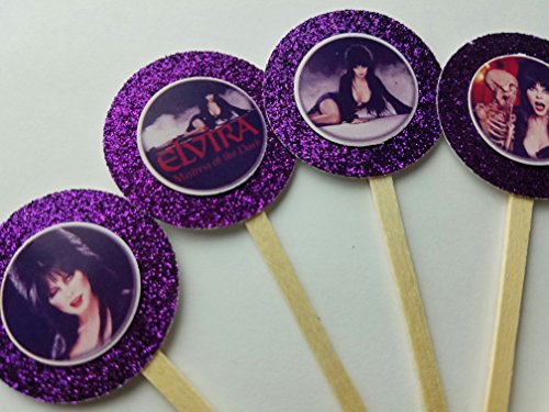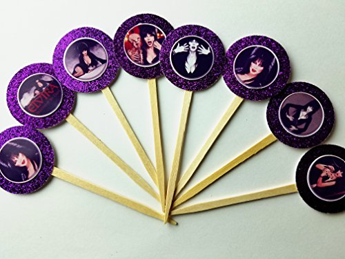 8 Elvira Halloween Cupcake Toppers Retro I love the 80's Classic Birthday Monster Party Dark Gothic 1st first supplies