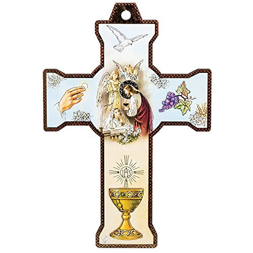 Girl's First Communion 6.25 Inch Wooden Illustrated Wall Cross
