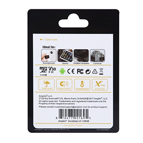 ULTRA FAST U3 V30 A1 UHS-1 CLASS10 - Up to 667X (100MB/s) 128g, 64g turbo cards. 2017 New Phone/Tablet Compatibility: Samsung Galaxy J2 Tab A Note 8 S8 Plus S8+ Active J7 V Max J3 Emerge J5 Prime Z4 Amp Prime Express 2 Xcover 4 Book Tab S3 C7 C9 Pro A7 A5 A3; LG V30 X charge Q8 Q6 G6 G6+ X venture Stylo 3 Plus Harmony K20 V Fortune Phoenix 3; Huawei Honor 9 7X 6C 8 Pro View 10 V10 Mate 10 Lite Y6 Pro P8 P9 Lite P10 Plus mini nova 2 Plus6A nova 2 Y7 Prime; Asus ZenFone V Live4 Selfie Pro 3S 10 LTE Max Live AR 3 Zoom; T-Mobile Revvl Plus; OPPO F5 R11 F3 Plus; Xiaomi Redmi Y1 Lite Mi A1 Max 2 5 Plus Note 4X; HTC U11 life Desire 555 U Ultra Play; Nokia 2 8 3 5 6; ZTE Blade X Force Vantage Z Max XL 3 V8 Mini Lite Pro; Alcatel IDOL 5 LED A7 A30 Tablet Fierce U5 HD Idol 5S A30 Plus A50; Motorola Moto X4 G5S Plus G5S Z2 Force Edition E4 Plus Z2 Play G5 Plus; Sony Xperia XZ Premium XA1 Plus Ultra XZ1 Compact L1 XZS; BLU Life One X2 Mini R1 Plus Tank Xtreme Dash L3 Vivo XL2; Razer Phone; nubia N2 N1 Lite; BlackBerry KEYone; ARCHOS 50 55 Graphite; FiGO Gravity; Amazon Fire HD, Microsoft Surface Pro 3 4. Water proof, temperature proof, shock proof, X-ray proof, magnet proof.