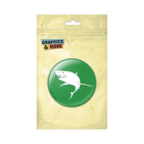 (Graphics and More)/Accessories/Hair Accessories/DIRECT FROM USA/Great White Shark on Green Pinback Button Pin Badge