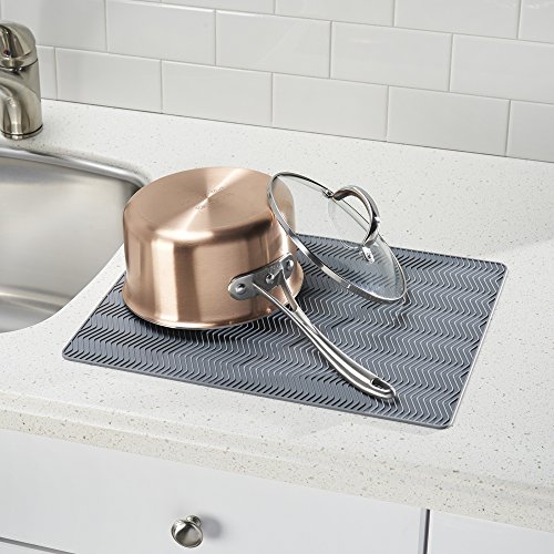 mDesign Silicone Chevron Dish Drying Mat for Kitchen Countertops - Large, Gray