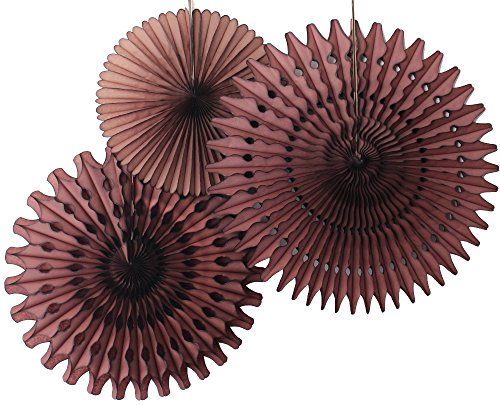 [Product Information]- Beautiful set of three brown honeycomb tissue paper party fans - one 13 inch fan, one 18 inch fan, and one 21 inch fan