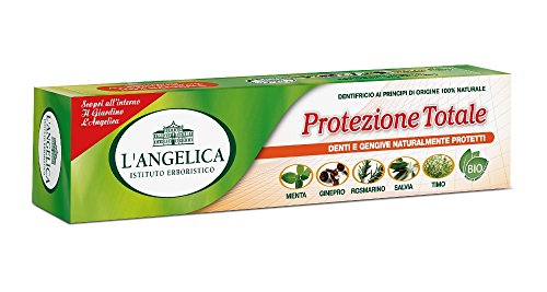L'Angelica: " Protezione Totale " Total Protection Toothpaste with Natural Bio Extracts of Juniper, Rosemary, Sage, Thyme & Mint - 75ml [ Italian Import ]