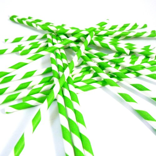 Bella Cupcake Couture Paper Party Striped Straws, Green/White