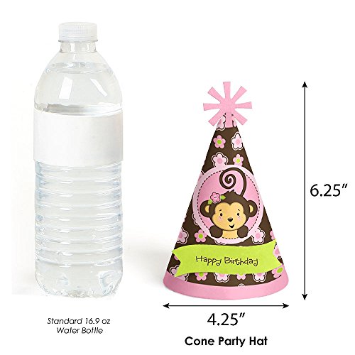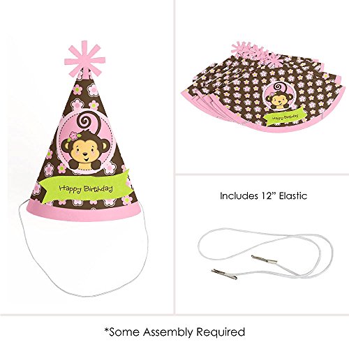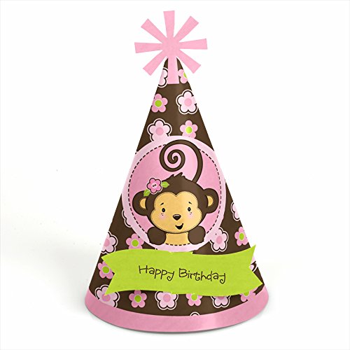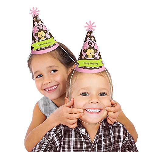 -. Feature : Monkey Girl Party Hats INCLUDES 8 Monkey Girl cone birthday party hats with decorative pop out flags and elastic chin straps Monkey Girl party hats will fit both children and adults. / Monkey Girl birthday party hats SIZE 6.25 inches tall and 4.25 inches in diameter at the base. The included elastic chin straps measure 12 inches long. Each of these fun pink and brown party hats feature a unique star cut-out decoration at the top and pop-out flag stating "Happy Birthday". / FUN BIRTHDAY PARTY SUPPLIES: Monkey Girl birthday party hats are perfect for your pink monkey party. This set of cute party hats will help you take adorable party photos. They are sure to be enjoyed by all your friends and family - and the guest of honor! / PREMIUM PARTY HATS: Set of Monkey Girl party hats are professionally P.R.Inted on heavy-duty cardstock paper with a photo-like shine. They are individually inspected, then carefully packaged. Monkey Girl cone birthday party hats will arrive flat, with the chin straps attached. Easy assembly is required. Simply roll the party hat into a cone shape and slide the tab into the slot to secure. / MADE IN THE USA: Monkey Girl Cone Birthday Party Hats are designed and manufactured at our Wisconsin facility using materials that are Made in the USA.