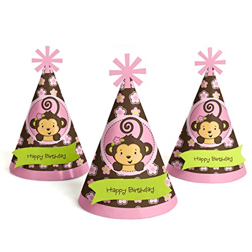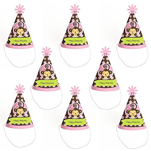 -. Title : Monkey Girl - Cone Birthday Party Hats - 8 Count