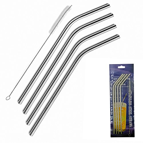 Extra Long Stainless Steel Drinking Straws, Pack of 4 Bent 10 inches with Cleaning Brush Strong Reusable Straws for Ozark Trail & Rtic and Yeti 20 oz 30 oz Rambler Tumbler by HENGYONGTA