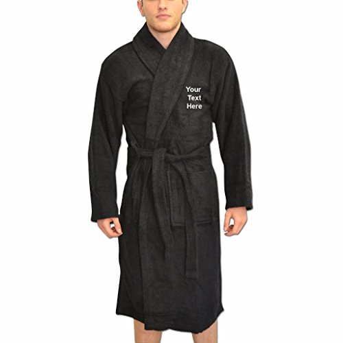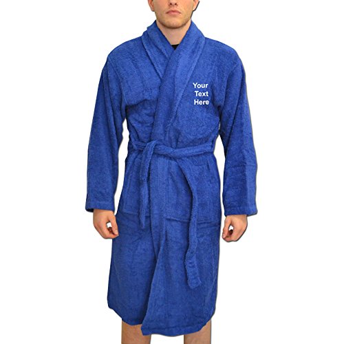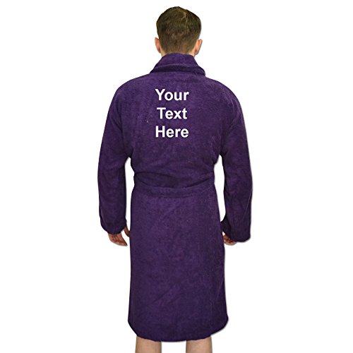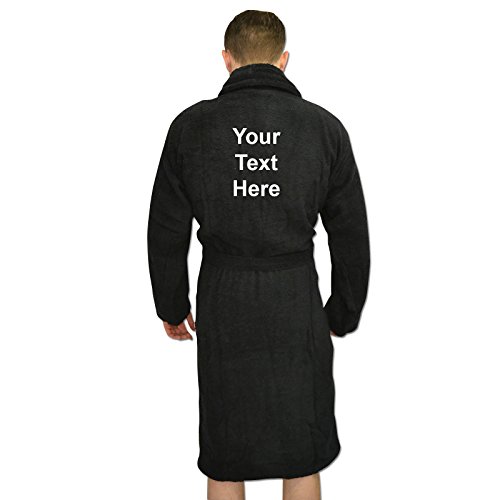 Binding : Apparel Product Description Men's Ethic Star PERSONALISED Dressing Gown Bathrobes. A great father's day gift for dad! Have this dressing gown personalised for your dad, perhaps 'The Boss' or 'The King' could be a fitting slogan for your dad? Perfect for lounging around in, this comfy and soft dressing gown can be personalised to suit your dad! Terry towelling kimono style robe with belt and large deep pockets. Bang Tidy Clothing's bathrobes can be personalised with any text you want to the left chest and upper back! You can also choose from 13 embroidery colours for your text; Black, Grey, Light Blue, Royal Blue, Navy Blue, Orange, Pink, Purple, Yellow, Lime Green, Green, Brown and White. Available in 10 Colours and in sizes Small/Medium Large/XLarge. Thick quality soft terry towelling 100% Cotton for a soft feel against your skin. Size Guide: Small / Medium (36/44") Large / X Large (44-50"), Length 119 cm. Please leave a gift message with the text wanted, and your choice of embroidery colour. IMPORTANT: Any orders made that are not left with a message of your choice of embroidery colour will have the default of BLACK for light colour robes, and WHITE for dark colour robes. Items with personalised printing cannot be exchanged or refunded unless the product is faulty or the printing does not match what the customer has supplied. 0