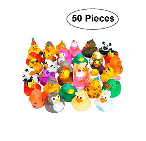 50 PACK- Kidsco’s rubber duck assortment comes in a pack of 50 2-inch rubber ducks per set for only the best value. with 50 you will have more than enough for the kids!