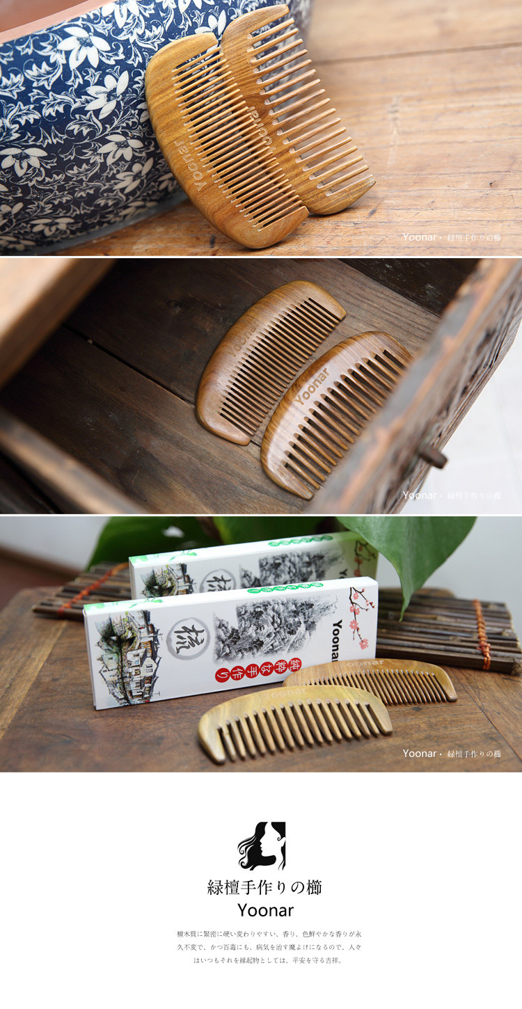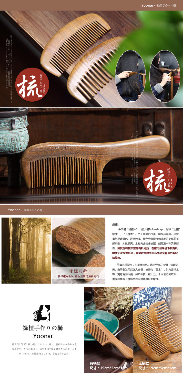 South American source material exported to Japan natural green sandalwood comb hair comb straight hair volume Brazil using imported raw materials, green sandalwood comb handmade.Green Macassar ebony expensive for itself in the holy wood, with a refreshing, blood circulation, anti-aging function,However, made with green sandalwood comb function is self-evident, but also keep hair conditioner remove hair of magic!This comb and stylish high-end gift packaging, can be sent to friends and colleagues and leadership, retention of hair care and beauty, but also caring for aging parents Oh ~ Color: Natural Green ebony color Specifications: Lever fine-toothed comb (19cm * 5cm * 1cm) sessile fine-toothed comb (12cm * 5cm * 1cm) sessile coarse tooth comb (12cm * 5cm * 1cm) Note: This comb by the Brazilian imports of natural green sandalwood hand-made with natural sandalwood fragrance, without any added, can be assured.After a period of time, will slowly turn green, and valuable for collection!