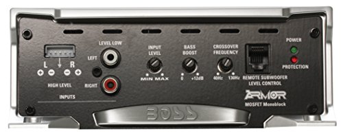 Take your audio power up a notch with the Boss Audio Armor AR2500M Class A/B Monoblock Amplifier. This powerful 2-Ohm stable amplifier features 2500 Watts Max Power with a MOSFET power supply to kick start your music. Customize the sound with Variable Low Pass Crossover and Bass Boost. Max out the Bass range and rock your vehicle with the Remote Subwoofer Control. The Armor Series of Amplifiers packs incredible power and performance into a feature-rich slim design for put-it-anywhere convenience. Boost your music's Bass with the Boss Audio AR2500M