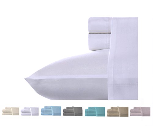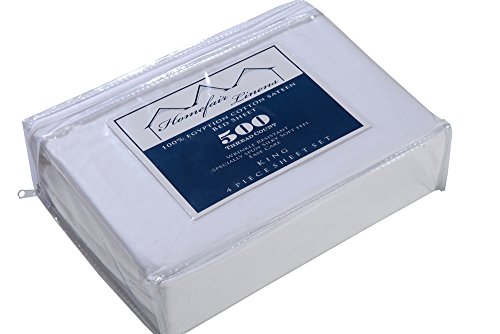 Homefair Linen Bedsheet 500 Thread Count 100% Cotton Sateen weave King Sheet Set, 4 Piece Bedding Set, Elastic 16 inch Deep Pocket, Edge Hemstitch, White