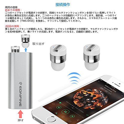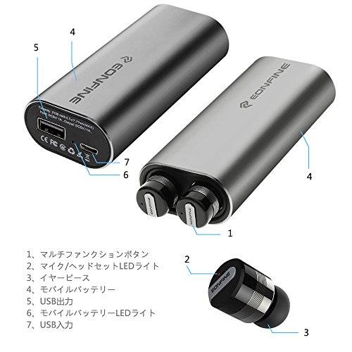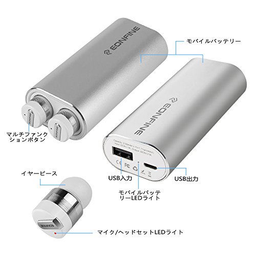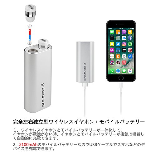 -. Title : Bluetooth イヤホン Eonfine 完全ワイヤレス イヤホン 両耳 片耳とも対応 高音質 ブルートゥース イヤホン 左右独立型 V4.1 Bluetooth ヘッドセット モバイルバッテリー付き 超小型 超軽量 スポーツ イヤホン マイク内蔵 ハンズフリー通話可能 ステレオイヤホン(シルバー)