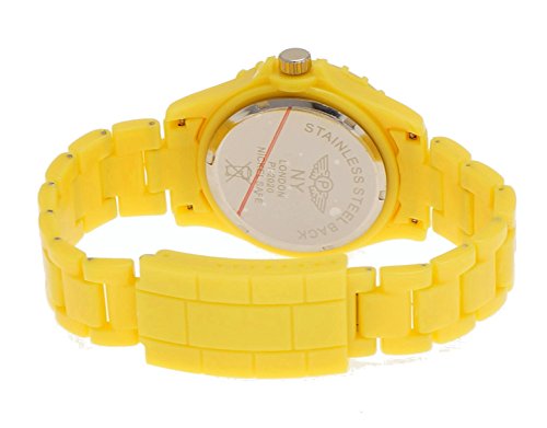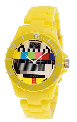 NY London Retro Classic Unisex Testpage Closedown TV Screen Test Pattern Women Men Plastic Bracelet Watch Ladies Watch Mens Watch Wristwatch Yellow including Watch Box and Bracelet Shorter