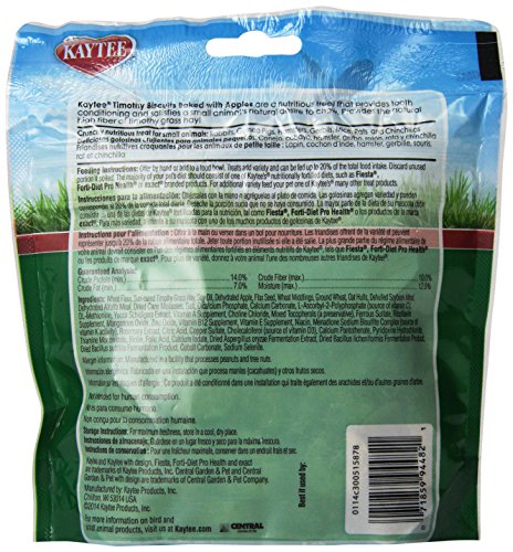 Baked Timothy Hay Treats with Apples or Carrots are nutritious treats that provide tooth conditioning and satisfies a small animal's natural desire to chew. Providing the natural high fiber of Timothy Hay in a fun-flavored baked treat!.Feature