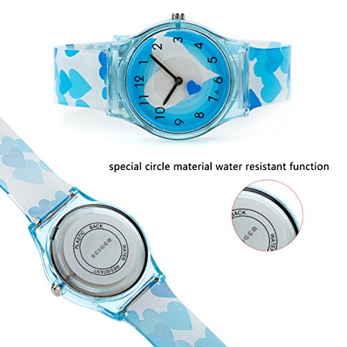 kids new cool watch - Quartz movement, Casual watch, White hands and numbers,Resin bezel, Resin case, crown and caseback, 30 meters/99 feet water resistant The Kids'easy read Watch by zeiger is the perfect starter watch for your child. Its sturdy high-grade White silicion children's-length band attaches with easy-to-fasten Buckle. Featuring analog-quartz movement and stationary bezel around the handsome, round resin case, the watch has color dial with numerals, white hour, minute, and second hand . It's Water resistant to 30 m (99 ft): In general, withstands splashes or brief immersion in water, but not suitable for swimming. Kids favorite color rainbow