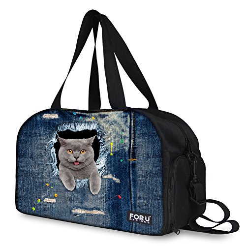 -. Title : Youngerbaby Cute Denim Cat Print Bag Lightweight Travel Outdoor Overnight Handbag