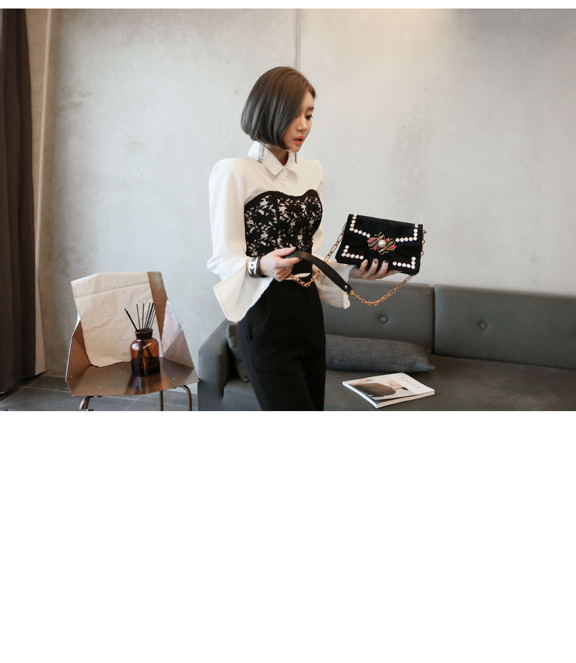 アウトラインの配色ステッチでトレンディーなポイントをくれました