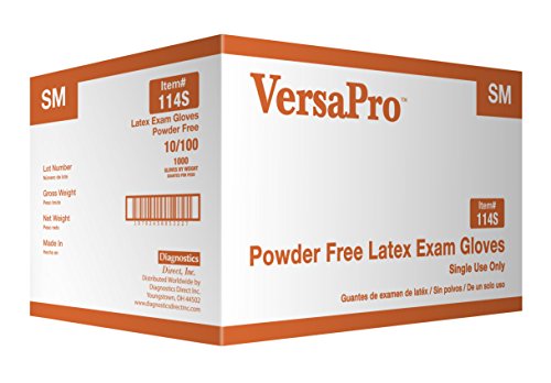 VersaPro 114S-Case Latex Exam Gloves, Powder Free, Small, White (Pack of 1000)