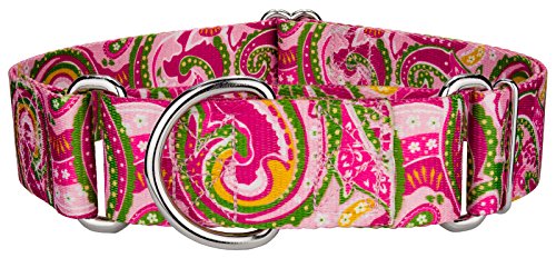 Studio : Country Brook Design Publisher : Country Brook Design Binding : Misc. Product Description Is your dog slipping out of its collar when you go for walks? Try a no-slip, adjustable Martingale collar from Country Brook Design! These collars are made to prevent your dog from slipping out of its collar while being walked on a leash and can also be used as a training collar. The Martingale collar is often referred to as a humane choke collar. They feature a twin loop design that works by tightening around your dog's neck whenever it tries to remove its head from the collar. Then, the Martingale will loosen again when your dog stops struggling against it. The limited closure of the Martingale collar prevents it from becoming too tight. A no-slip, adjustable-choke collar is an excellent solution for sighthounds who slip out of their collars. All of our collars are handcrafted to your exact specifications after the sale. Please note that we will ship within four business days of receiving payment and size. By adjusting the metal slide, open the collar loop wide. Slip it over your dog's neck and decrease size until you can comfortably slip only a couple of fingers under the collar. The unique limited closure prevents the choke from becoming too tight. 0