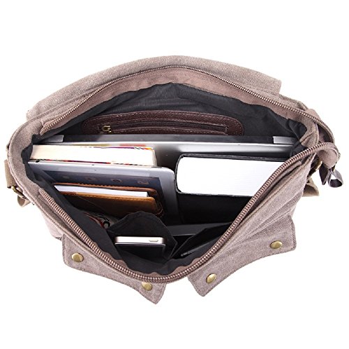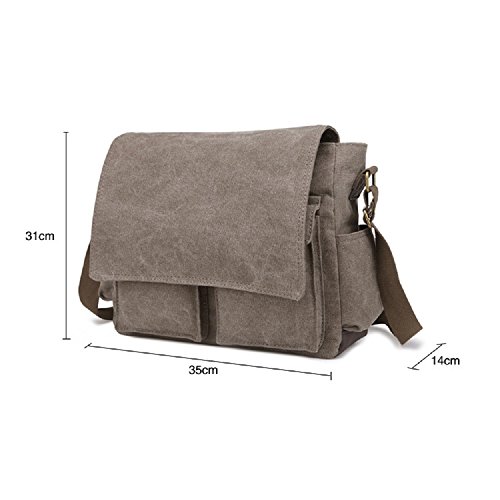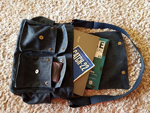 -. Brand : Purple Relic -. Department : mens -. Feature : POCKETS: 9 Pockets to store whatever you need; 3 zipped pockets, 2 button pockets; 2 side pockets; 2 inside slip pockets; / MATERIAL: Ultra durable canvas with denim looks; High quality metal accessories; / SPACIOUS: Enough space for up to 14" laptop, tablet, phone, wallet, books and other essentials; 14" L x 12" H x 5.5"W / FEATURES: Quick access with magnetic clasp; Broad shoulder strap for pain free carrying; Long zipper handle for easy fastening; / STYLE: Seven-day essential use bag; Carry your style; -. ProductGroup : Apparel -. ProductTypeName : LAGE -. Size : Large -. Title : Messenger Canvas Bag; School Shoulder Sling Bag; Unisex Laptop Bag;