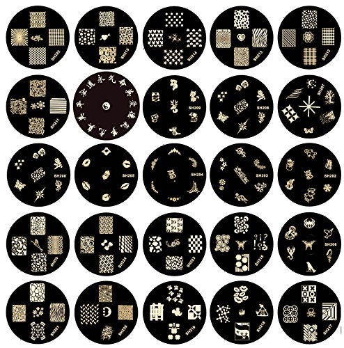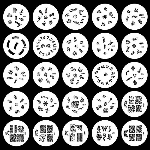 -. Feature : Package: 20 Pcs Nail Stamping Plates / Film: Blue film on the surface ( remove before use) / Note:due to the nail polish's color covering is differenct,not all the color is suit to the stamping .thank you for your understanding / The set comes in a pack of 20 and each plates has its own protective layer, please be sure to remove the thin layer before using the product. / Awesome designs, cherry picked styles, lots of marks, faces, cartoon characters, animals, words, Japanese words, Chinese letters, shapes, holiday designs, seasons, and more.