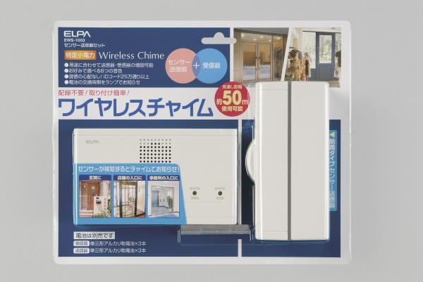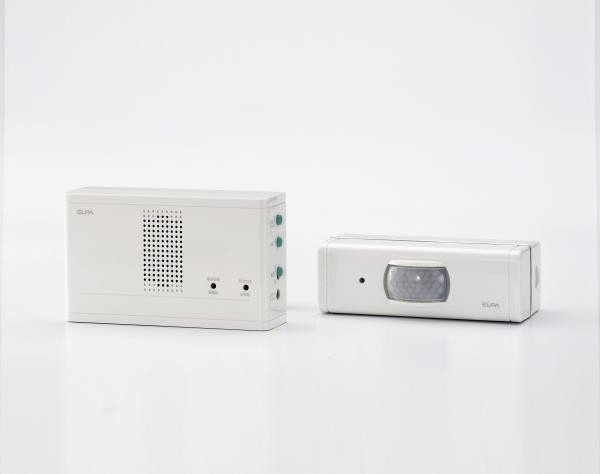 受信器+センサー送信器セット。配線不要のワイヤレスチャイム。報知・連絡を8種類の音でお知らせする受信機と、センサー送信器がセットになりました。