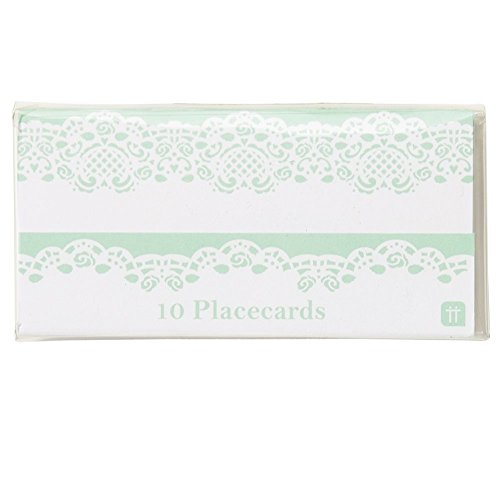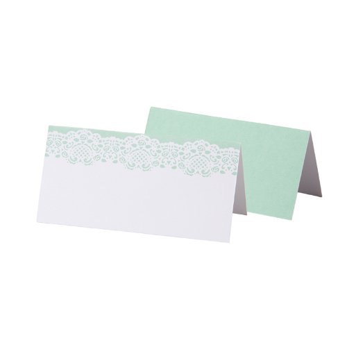 Product Description Stunning lace print mint green placecards. Perfect for weddings or special occasions. 10 x card place cards in a pack. Size: 9cm x 5cm. 0