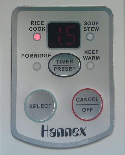 Hannex Rice Cooker is designed for use in light duty household rice cooking. Truly healthy cooker integrates traditional Chinese cooking with ceramic utensils and modern 3D heating technologies. Nano non-stick ceramic inner pot. The rice cooker comes complete with a 50-in. (127cm) power cord and plug, The case frame is made from stainless steel and assemble with durable molded plastic. Multiple safety devices, ensures safe use. Simple, vogue style, compact with large capacity Multipurpose cooker design Innovative 3D heating technology saves power 9.5 hours timer & preset function Easy to read digital readout for time Stainless steel case. Molded plastic bottoms Microcomputer fuzzy logic control, one-touch operation CETL listed Full one-year parts and labor warrantyFeature