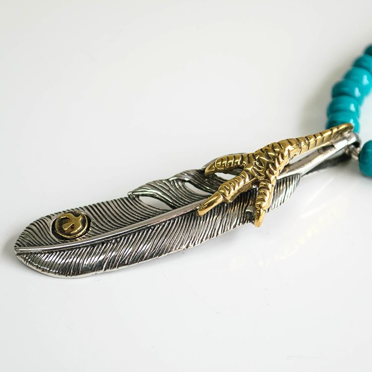 ペンダントトップはイーグルの足とフェザーが精巧に施されています。イーグルの足は、ブラスで作られております。