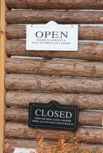M2cbridge Vintage Wooden Hanging Double Sides Open Closed Door Sign Store Poster (Black)