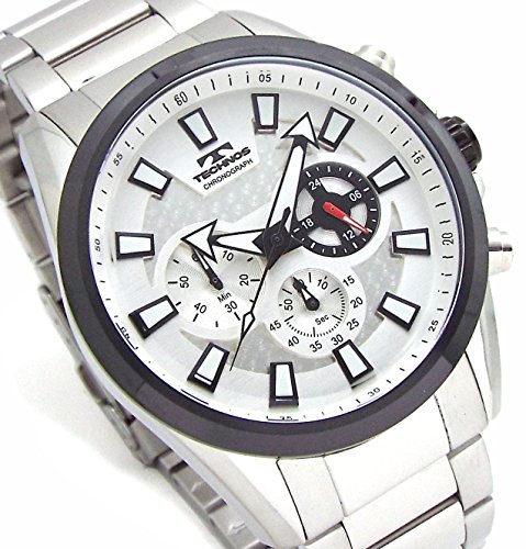 TECHNOS 테크노스 맨즈 손목시계 BIG FACE 크로노그래프 10기압 방수 실버 다이얼 벨트 조절 공구세트 SM-616-TS [병행수입품]