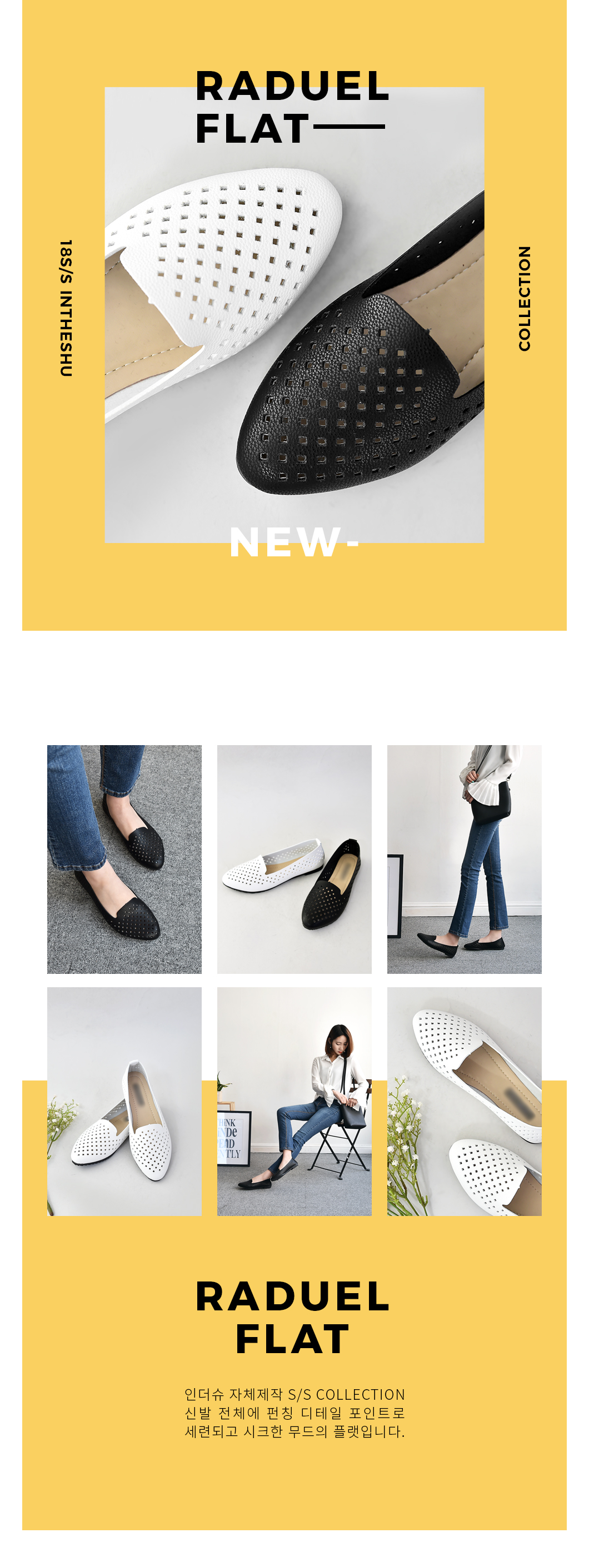 심플한 디자인에 신발 전체에 펀칭 디테일이 산뜻하면서 시크한 포인트가 되는 플랫입니다.