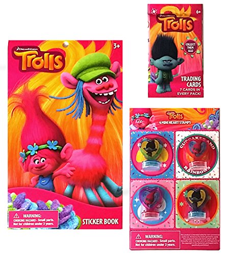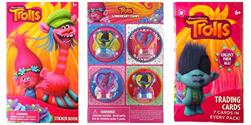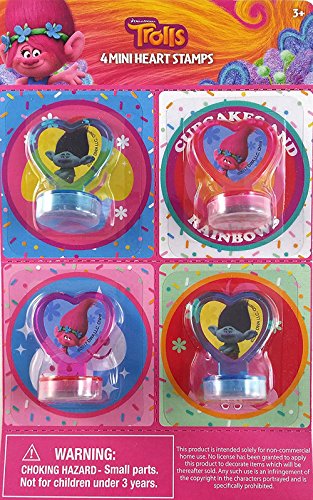 Trolls Dreamworks Poppy Mini Heart Stampers, Cards, Sticker Stocking Stuffer Bundle, 9 PC