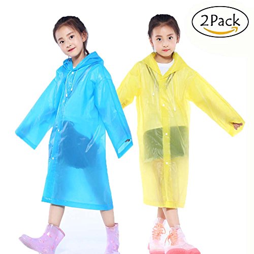 -. Title : Laviee 2 Pack Kids Rain Poncho Reusable with Hoods and Sleeves