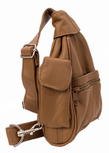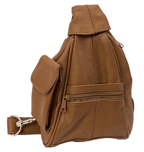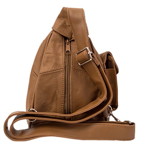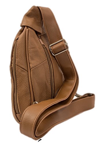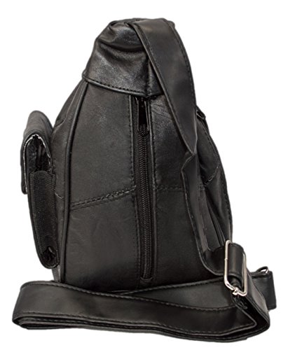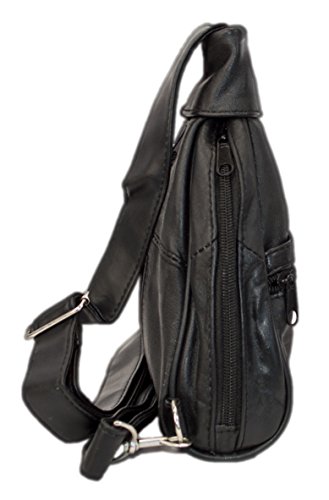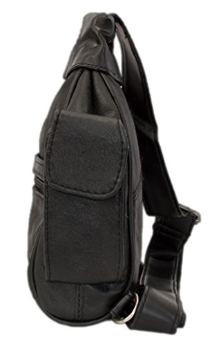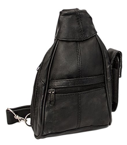 Product Description Fashion forward 100% lambskin leather sling bag can be worn over the chest and shoulder for easy hands-free wear or around your waist as a durable fanny pack. Fits great for both men and women with multiple small pockets to organize your essential belongings. Pockets are secured with zippers for anti-theft features to keep your items safe. Wear on trips, for hiking or to special outdoor events. 0