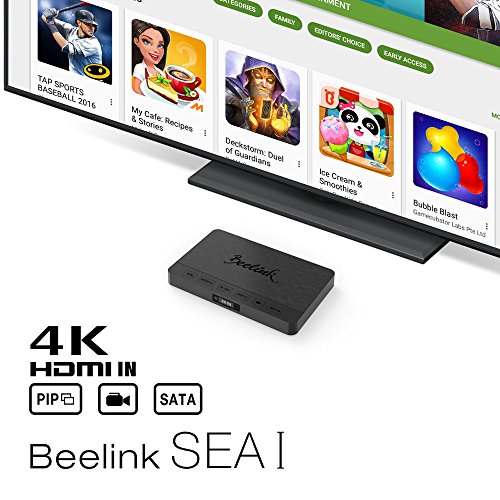 -. Feature : Beelink SEA I Hard disk specifications 1,The device is in working condition, Please do not insert / remove the hard disk 2, Hard disk interface type: Support SATA III (1.5G / 3G / 6G) specifications 3, Hard disk size:2.5 inches 4, Hard disk thickness support: 9.5MM /7.5MM / Beelink SEA I OS: Android 6.0 Language : Multi -language CPU: Realtek 1295 DD Quad-Core ARM Cortex-A53 GPU: ARM Mali-T820MP3 GPU-Mali-450 8-core equivalent / Beelink SEA I TV Box with Realtek 1295 DD Quad-Core ARM Cortex-A53 CPU has two Ports, one is a Standard USB 3.0 Port, and the other is a Standard USB 2.0 Port, which has a better transferring speed, much fasterer than before two Standard USB 2.0 Ports. / Beelink SEA I TV Box has a HDMI IN Type Port and HDMI OUT Type Port, whose functions of HDMI IN and Picture in picture are excellent. That is to say, one screen can display different contents, you don't need to switch different HDMI cables if you want to read different messages, which both save your time and aviod any troubles. / When the mainstream set-top boxes still stuck in DDR3. Beelink set-top boxes have been upgraded to faster DDR 4 by increasing the read- write rate to 2133 MHz to 15% faster frequency increase, open or use applications more quickly. Moreover, SEA I support Gigabit Ethernet, Dual-band Wifi, 802.11 as protocol.